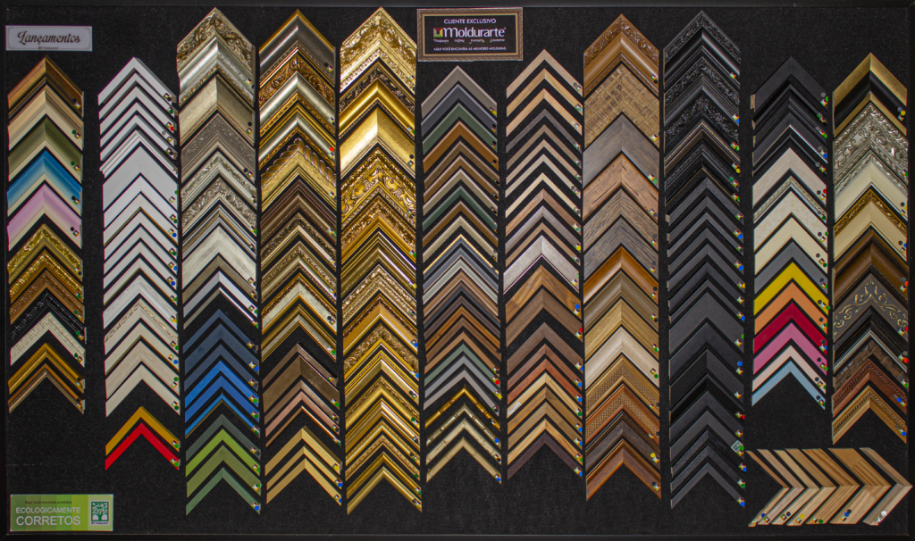 É uma linha de molduras clássicas, que valoriza e enriquece o que está sendo enquadrado.